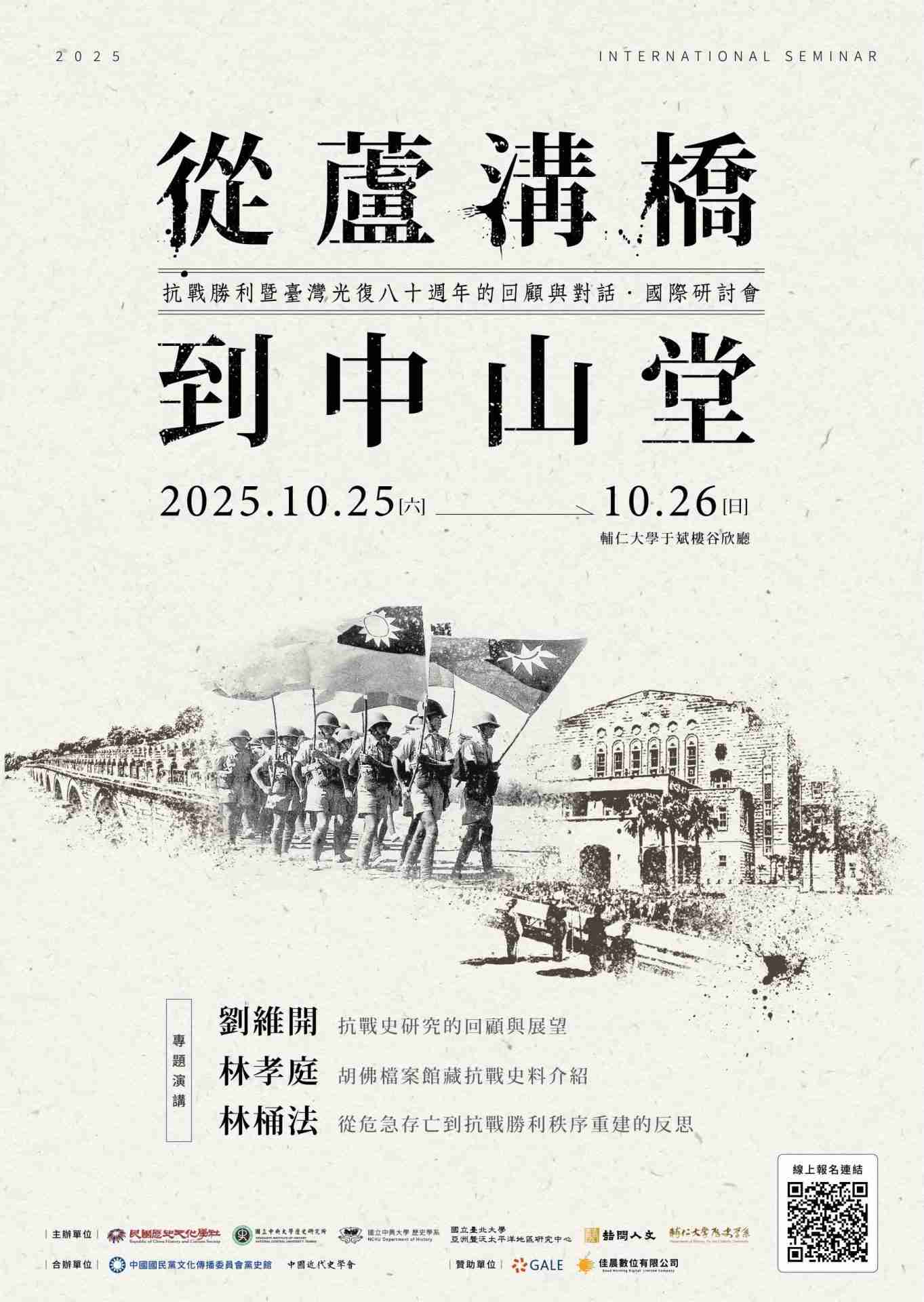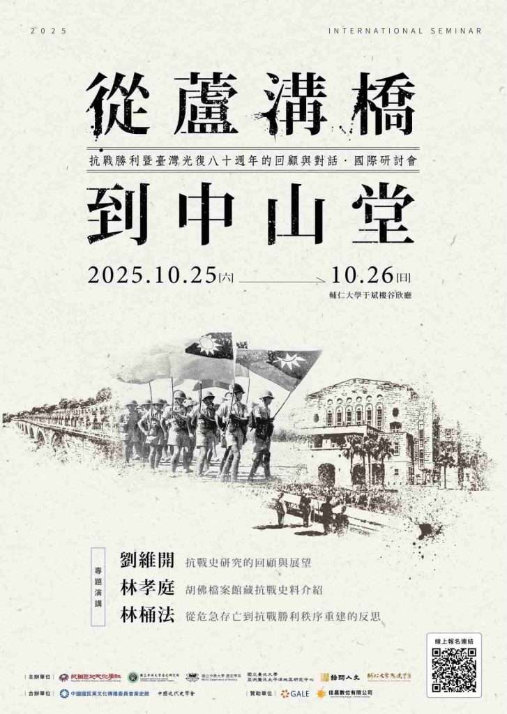 - 名稱:「從蘆溝橋到中山堂:抗戰勝利暨臺灣光復八十週年的回顧與對話」國際學術研討會