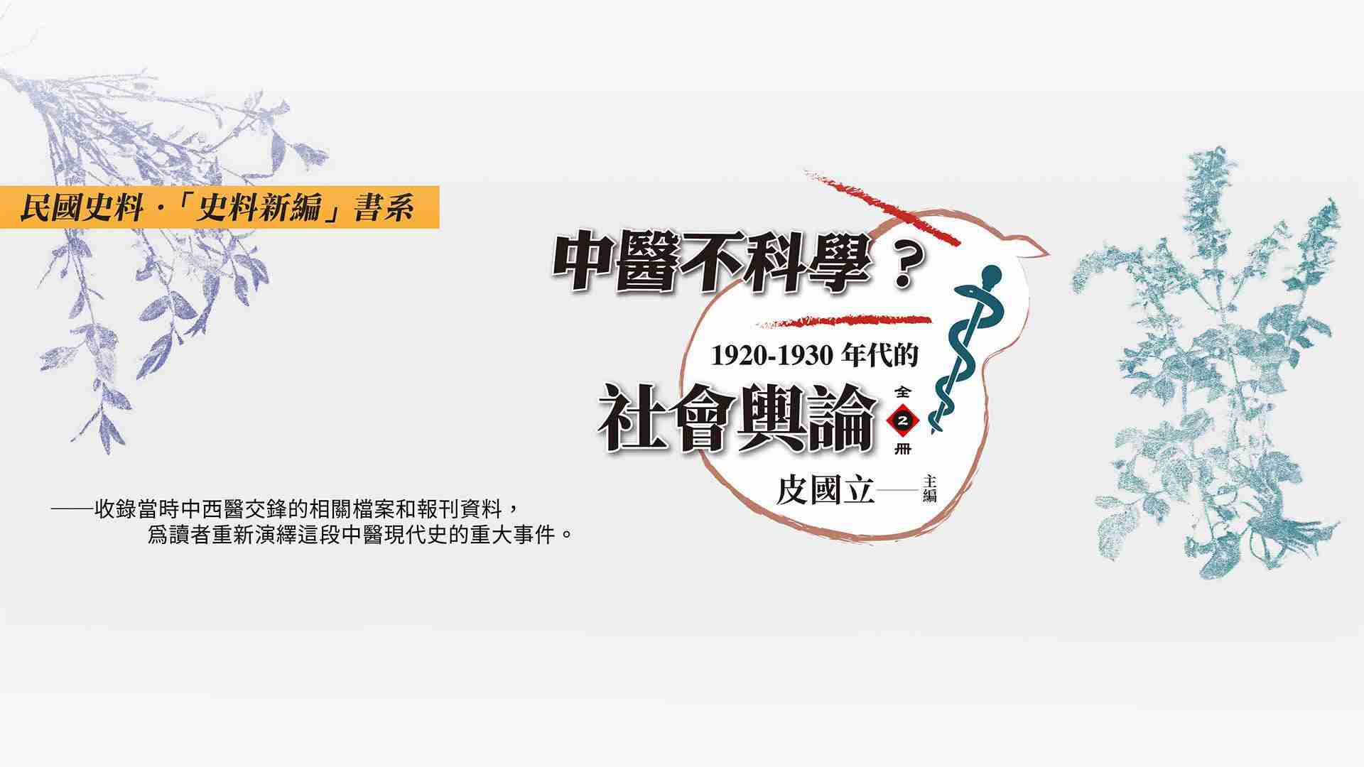 《中醫不科學?1920-1930年代的社會輿論》為民國歷史文化學社與喆閎人文工作室合作學者皮國立教授(國立中央大學歷史研究所副教授兼所長)合作出版的最新中醫藥史料彙編。