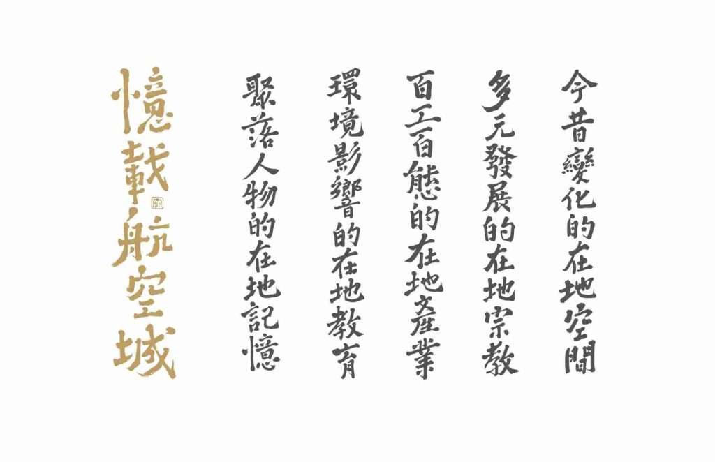 • 《憶載航空城》一書的出版,是喆閎人文工作室受桃園市政府文化局委託,歷時兩年經過在地田野調查、口述訪談、史料蒐集後,彙整編寫而出的第一本保留大園航空城在地文史的首要成果展現。