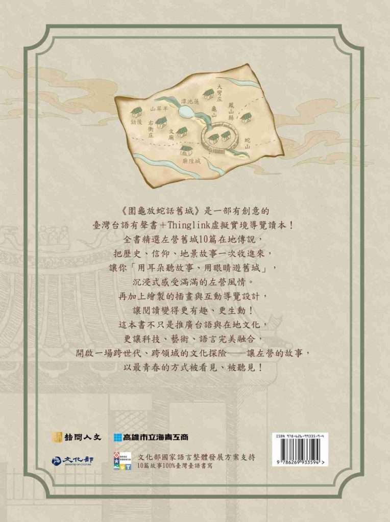 - 《圍龜放蛇話舊城》此書以高雄左營舊城為核心,結合在地傳說、臺灣台語文學與數位科技,發展十篇兼具教育性與創意性的臺灣台語文本,透過有聲書與虛擬導覽,展現語言、文化與地方記憶的多重面貌,極具文化推廣與教育價值。