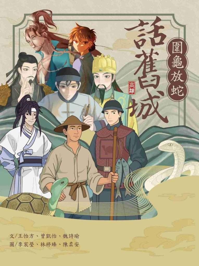 很榮幸向大家推薦這本新出版的臺灣台語有聲繪本《圍龜放蛇話舊城》。這本繪本的編輯計畫由高雄市立海青工商王怡方、曾凱怡、魏詩瑜等三位老師所組成的台語文教學團隊發起,搭配學校特色課程的走讀活動,結合左營舊城的歷史建築與宮廟文化,帶學生走出課堂、實地探訪,用台語文記錄在地文化。一共採集民間流傳的十篇神話傳說,不僅運用活潑順暢的台語文撰寫精采故事,更邀請學校廣告設計科及美工科的學生參與美術設計及數位內容製作,圖文相互輝映成章,成果斐然耀眼。