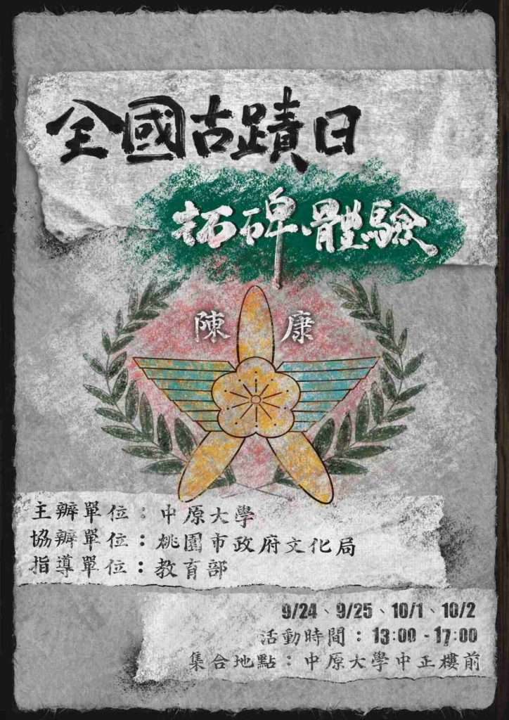 ■ 本次全國古蹟日的系列活動,中原大學要帶領大家前往的是航空城文史駐地工作站及大海社區的陳康國小。大海社區過去為空軍眷村,各村之間有村界碑區隔,也造就了該區域石碑眾多的特殊文史景觀,並且陳康國小內也有許多碑文銅像。